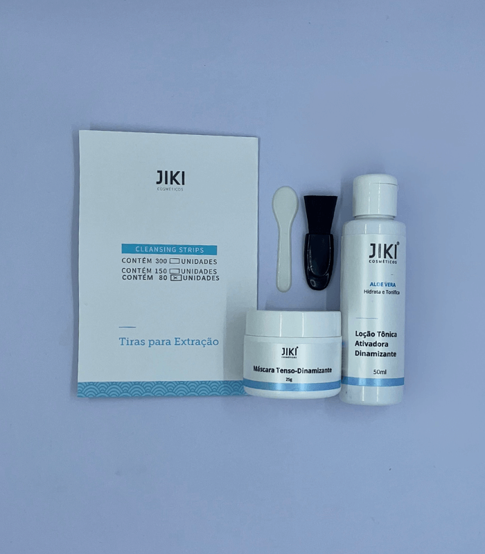 O Kit Máscara JIKI deve ser utilizado para limpeza de pele, removendo dos poros a poeira, sujidades, células mortas, com notável resultado na retirada de cravos (inclusive micro cravos) sem dor, com efeito altamente hidratante, nutritivo e tensor.